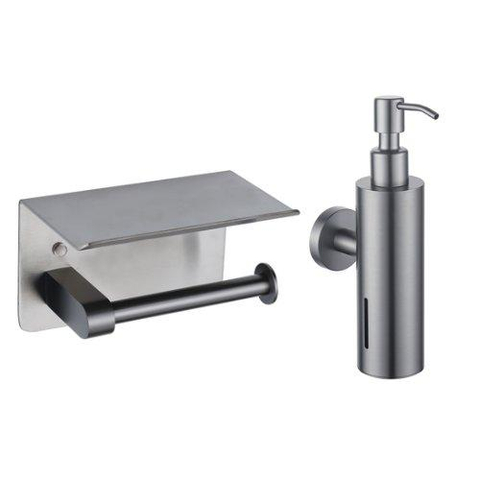 Fortifura Calvi ensemble d'accessoires de toilette - distributeur de savon - porte-rouleau - avec plateau - gunmetal brossé