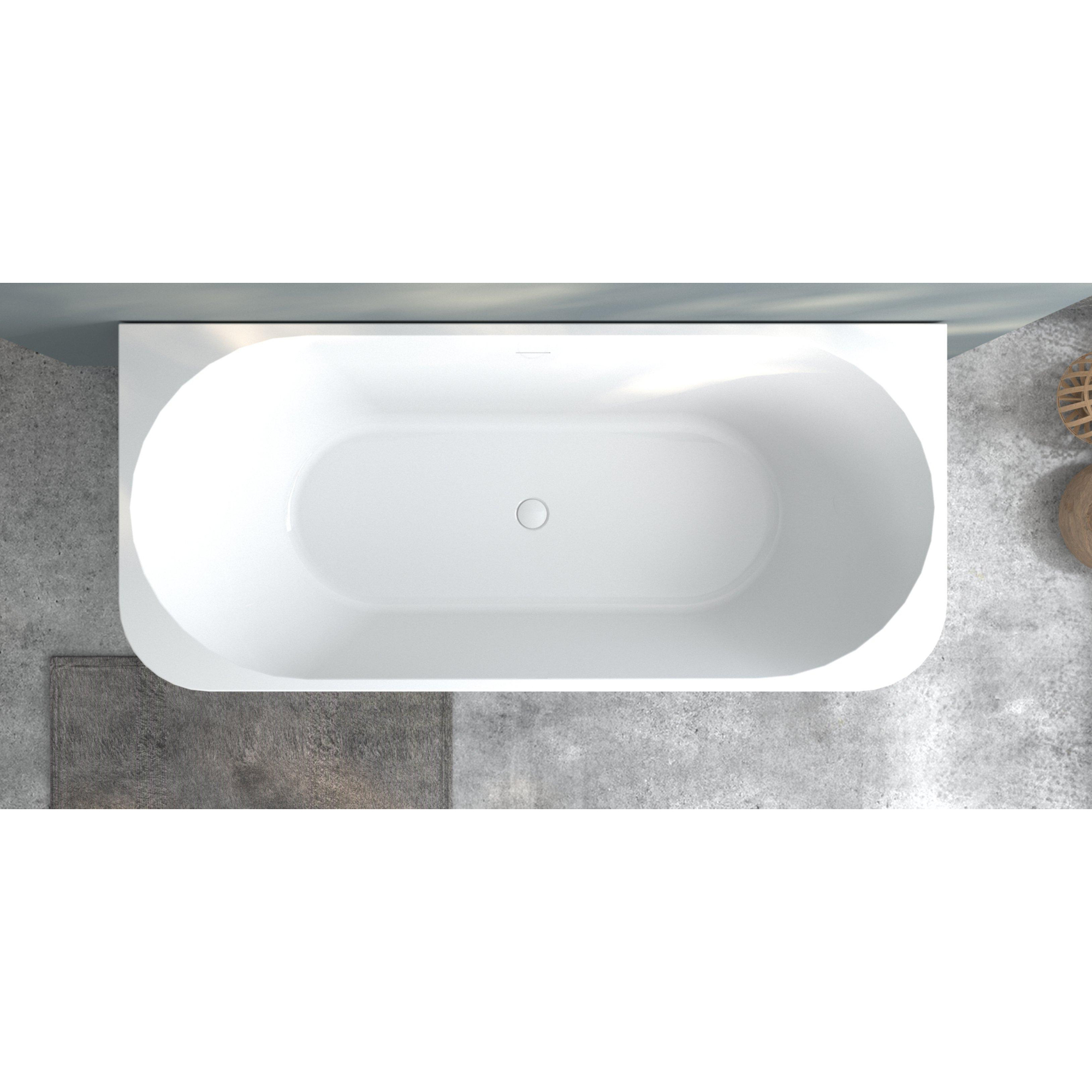 ZEZA Grand Baignoire demi-îlot – 180 × 80 × 58 cm – avec évacuation – acrylique – ronde – blanc brillant