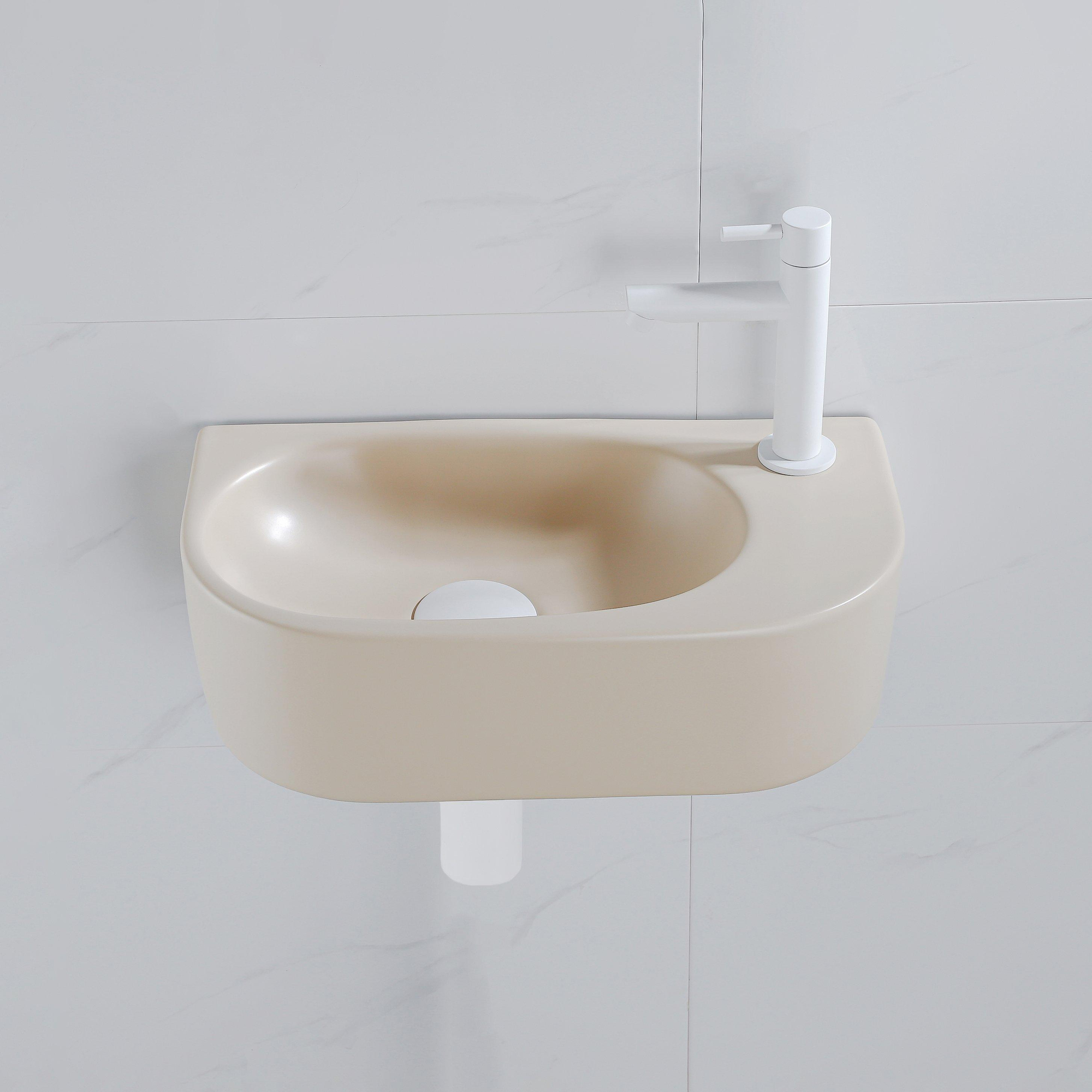 Fugaflow Efficiente Pietra Ensemble lave-mains – 40 x 21,5 x 12 cm – droite – lisse – demi-rond – 1 trou pour robinet – céramique – robinet pour lave-mains blanc mat – bonde d’évacuation – siphon extra-plat – beige