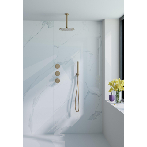 Vivez un confort et un plaisir ultimes avec cet ensemble de douche pluie conçu avec un souci du luxe. La finition laiton brossé PVD dégage une élégance intemporelle et ajoute une touche de glamour à votre salle de bains. La douchette à main barre et la douche de tête ronde assurent une répartition uniforme de l'eau, vous offrant une expérience de douche relaxante que vous voudrez répéter chaque jour.