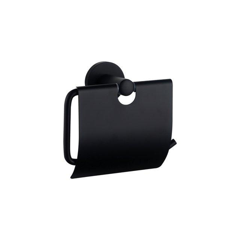 FugaFlow Eccelente Ensemble d'accessoires WC - porte-rouleau de papier toilette avec couvercle - brosse WC - crochet à serviette - noir mat