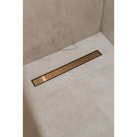 FugaFlow Eccelente Anta caniveau de douche - 120cm - grille fermée - bride de sol - Cuivre brossé PVD (Cuivre)