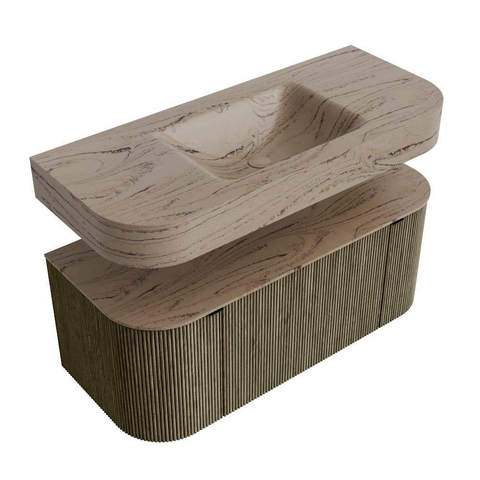 Des matériaux naturels dans des tons chauds. Les nervures verticales apportent rythme et texture au design, tandis que le chêne confère un aspect chaleureux et artisanal. Choisissez parmi 5 teintes de bois OAK, WALNUT, DUSK, SHADOW et RUBY – des couleurs soigneusement sélectionnées pour enrichir les salles de bains modernes comme classiques.