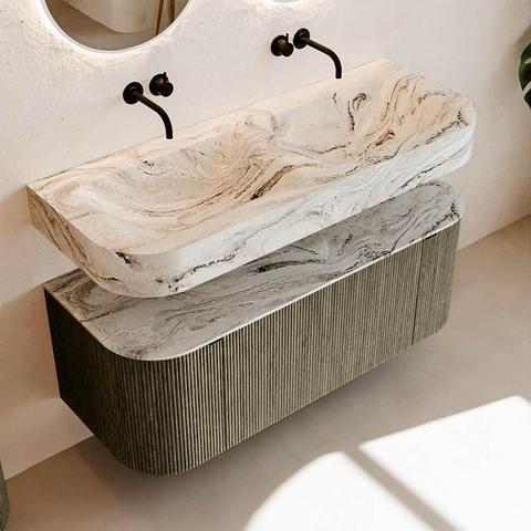 Meuble de salle de bains THOR-DLUX : Lignes organiques & Artisanat fonctionnel.