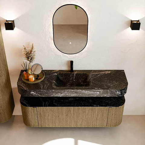 Matériaux naturels dans des tons chauds. Les nervures verticales apportent rythme et texture au design, tandis que le chêne confère une apparence chaleureuse et artisanale. Choisissez parmi 5 teintes de bois OAK, WALNUT, DUSK, SHADOW et RUBY, des couleurs de bois soigneusement sélectionnées pour enrichir les salles de bains modernes et classiques.