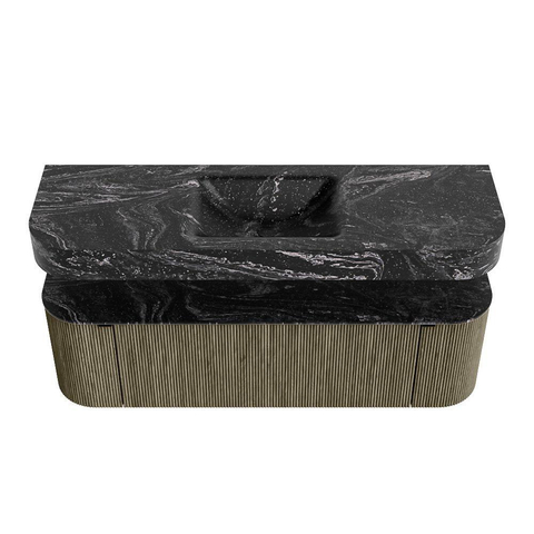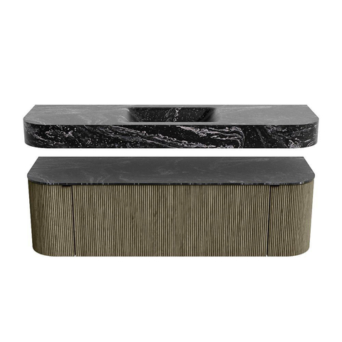 MONDIAZ THOR-DLUX 150cm meuble de salle de bains arrondi gauche + droite couleur Shadow avec 1 tiroir et 2 portes. Vasque suspendue CLOUD Milieu 1 trou de robinet couleur Lava.
