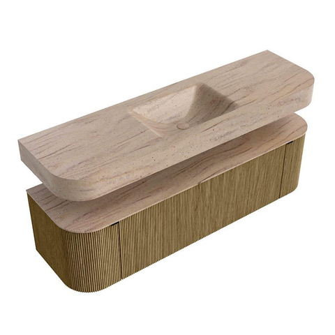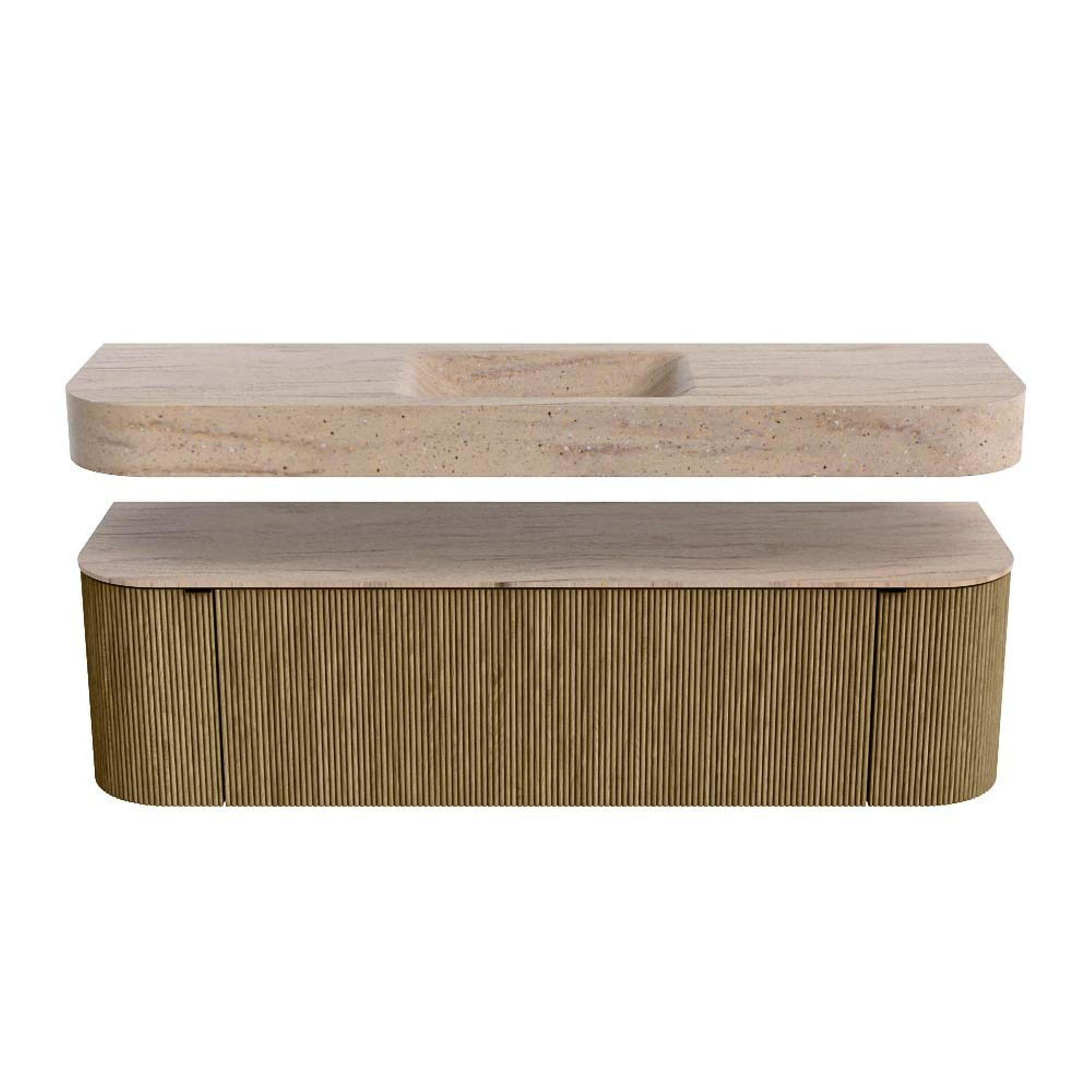 Des matériaux naturels dans des tons chauds. Les nervures verticales apportent rythme et texture au design, tandis que le chêne confère un aspect chaleureux et artisanal. Choisissez parmi 5 teintes de bois OAK, WALNUT, DUSK, SHADOW et RUBY – des couleurs soigneusement sélectionnées pour enrichir les salles de bains modernes comme classiques.