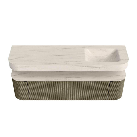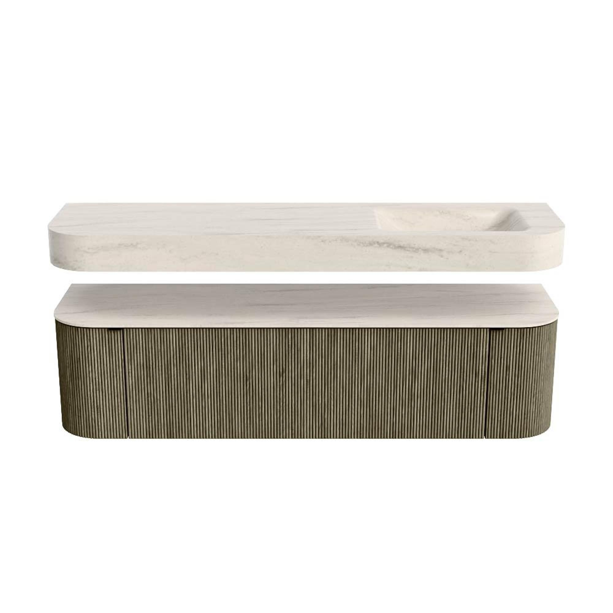 MONDIAZ THOR-DLUX 170cm meuble de salle de bains arrondi gauche + droite couleur Shadow avec 1 tiroir et 2 portes. Vasque suspendue CLOUD droite sans trou de robinet couleur Meli.