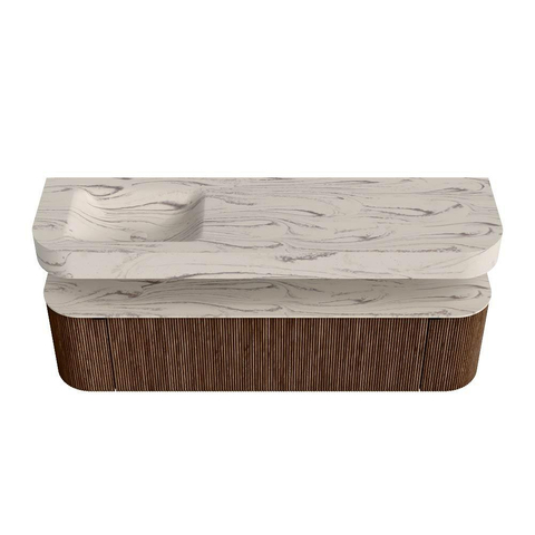 MONDIAZ THOR-DLUX Meuble de salle de bains 170cm arrondi gauche + droite couleur Walnut avec 1 tiroir et 2 portes. Vasque suspendue CLOUD Gauche 1 trou de robinet couleur Nata.
