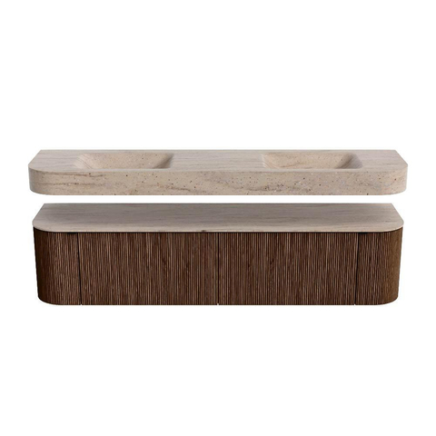 MONDIAZ THOR-DLUX Meuble de salle de bains - 190cm - arrondi gauche + droite - couleur Walnut - 2 tiroirs et 2 portes - Vasque suspendue CLOUD Double sans trou de robinet - couleur Saba