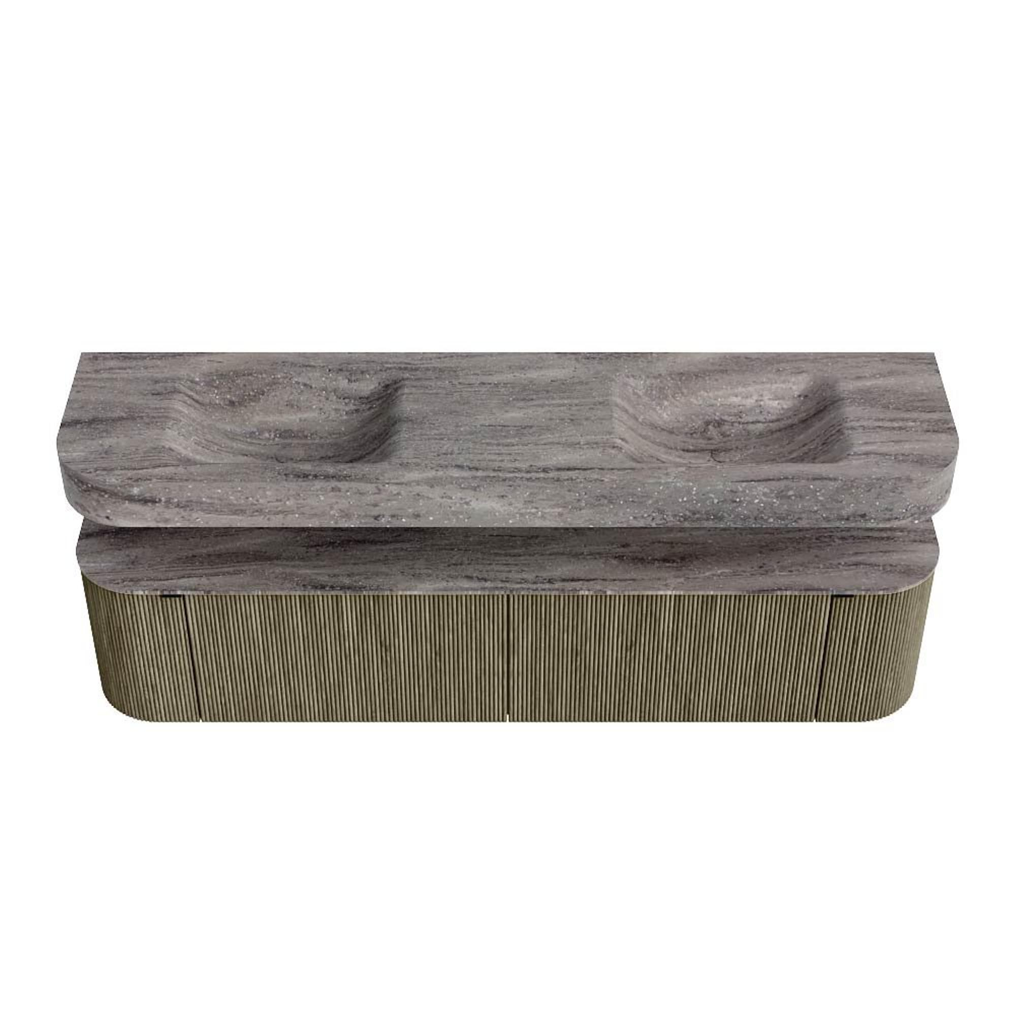 MONDIAZ THOR-DLUX Meuble de salle de bains - 190cm - arrondi gauche + droite - couleur Shadow - 2 tiroirs et 2 portes - Vasque suspendue CLOUD Double 2 trous de robinet - couleur Oza