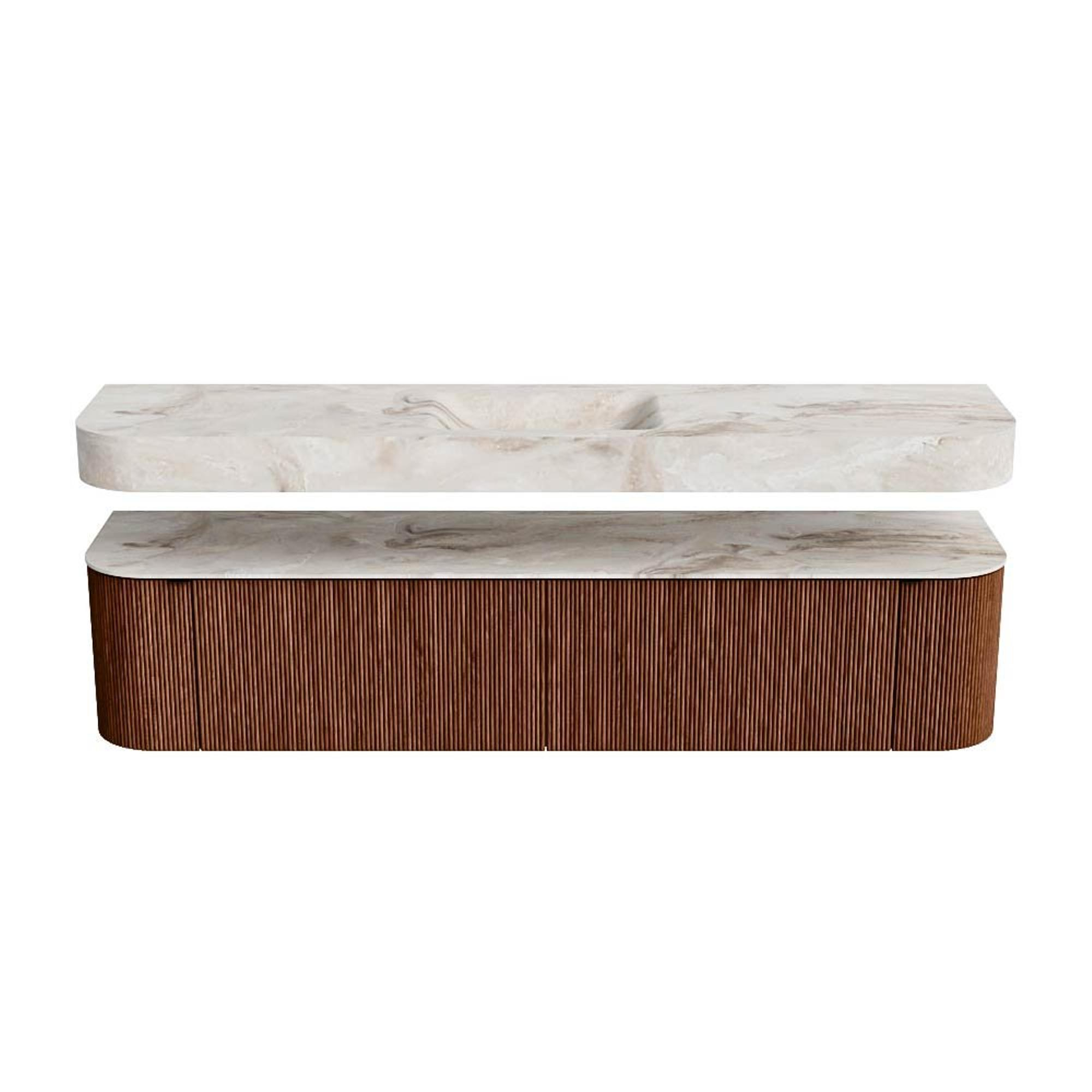 MONDIAZ THOR-DLUX Meuble de salle de bains - 200cm - arrondi gauche + droite - couleur Ruby - 2 tiroirs et 2 portes - Vasque suspendue CLOUD Centre 1 trou de robinet couleur Frappe