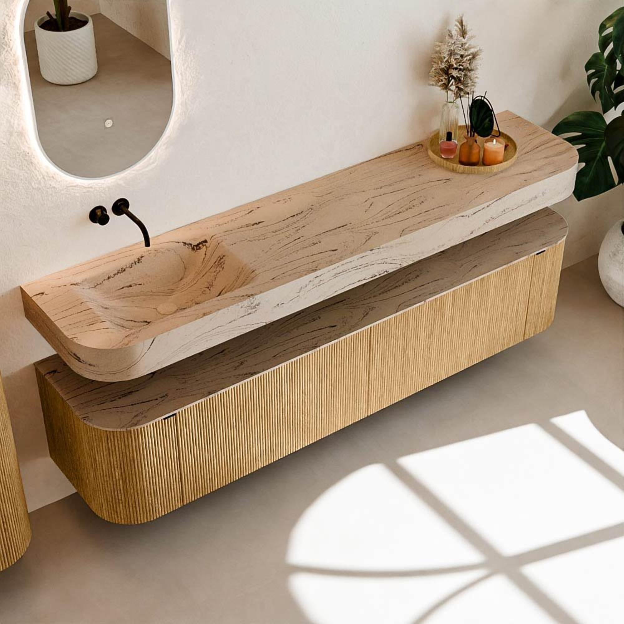 Meuble de salle de bains THOR-DLUX : Lignes organiques & Artisanat fonctionnel.