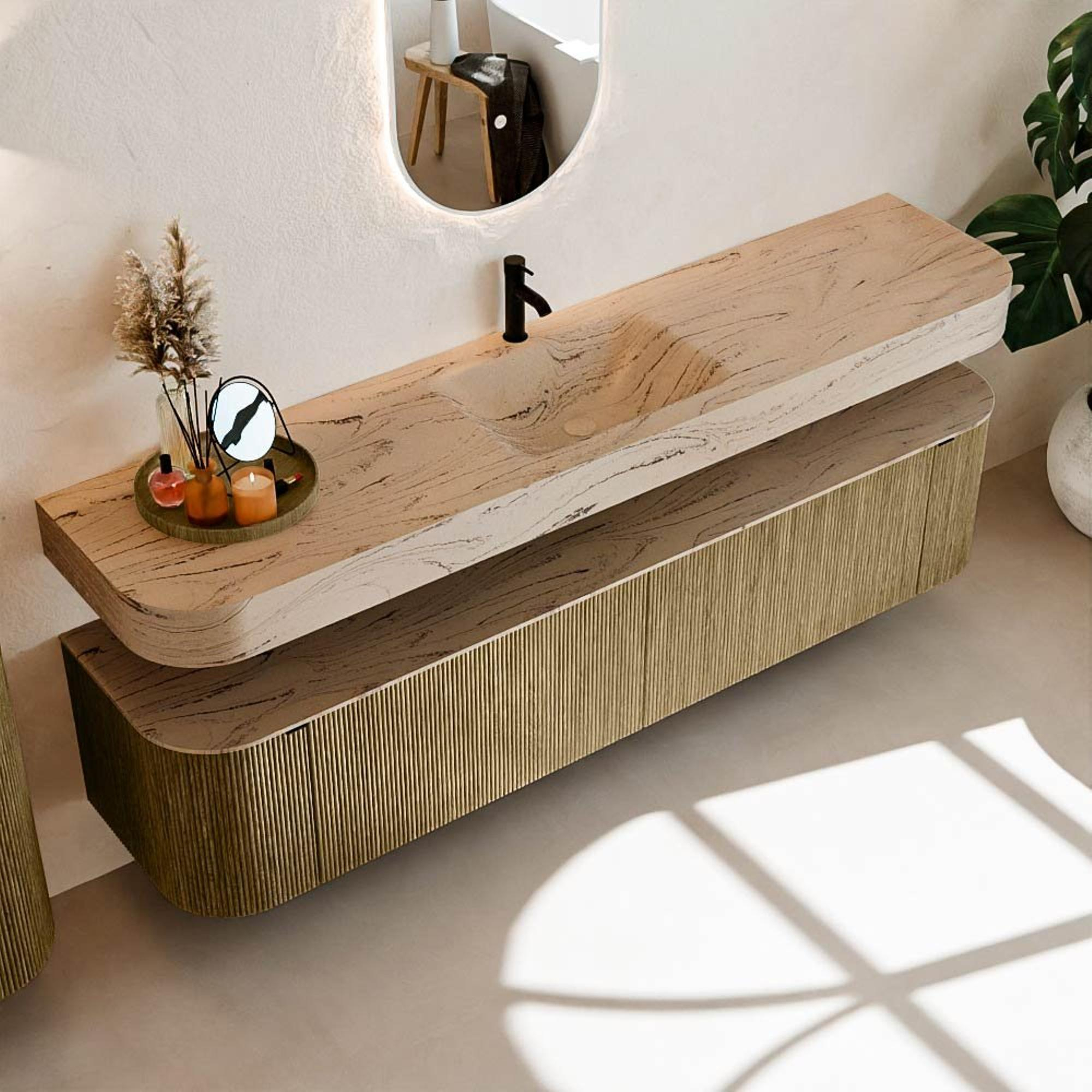 Meuble de salle de bains THOR-DLUX : Lignes organiques & Artisanat fonctionnel.