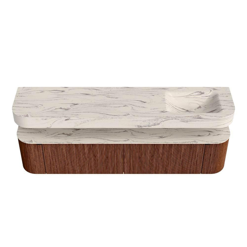 MONDIAZ THOR-DLUX 200cm meuble de salle de bains arrondi gauche + droite couleur Ruby avec 2 tiroirs et 2 portes. Vasque suspendue CLOUD Droite 1 trou de robinet couleur Nata.