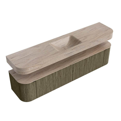 MONDIAZ THOR-DLUX 200cm meuble de salle de bains arrondi gauche + droite couleur Shadow avec 2 tiroirs et 2 portes. Vasque suspendue CLOUD Milieu 1 trou de robinet couleur Saba.