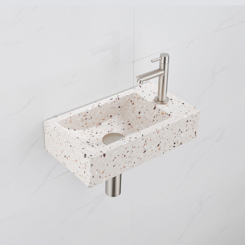 Offrez à votre salle de bains ou espace toilette une touche d'élégance et de praticité avec ce superbe ensemble fontaine. La vasque beige mat en pierre naturelle associée à un robinet en acier inoxydable brossé avec revêtement PVD crée une ambiance chaleureuse et contemporaine, parfaitement adaptée à divers styles d'intérieur. Compacte avec ses dimensions de 40x22x10 cm, cette fontaine est idéale pour les petits espaces sans sacrifier le confort ni le design. Le trou de robinet est astucieusement placé à droite, et l'ensemble comprend un siphon abaissé ainsi qu'un bouchon de vidage pour une installation soignée et complète.Avantages: