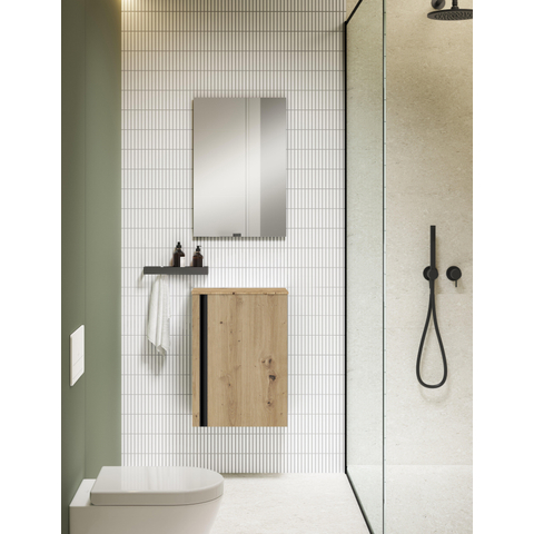 Les dimensions de 40x55 cm rendent ce meuble sous vasque idéal pour les petits espaces où vous ne voulez pas renoncer à la qualité et au design. Les lignes épurées et la finition soignée assurent que le meuble a une apparence élégante et professionnelle. Le plan de travail s'ajuste parfaitement au meuble et complète l'ensemble. Grâce à une conception réfléchie, ce meuble est facile à placer et à combiner avec diverses vasques et lavabos. Vous profitez ainsi d'une solution fonctionnelle qui convainc aussi visuellement.