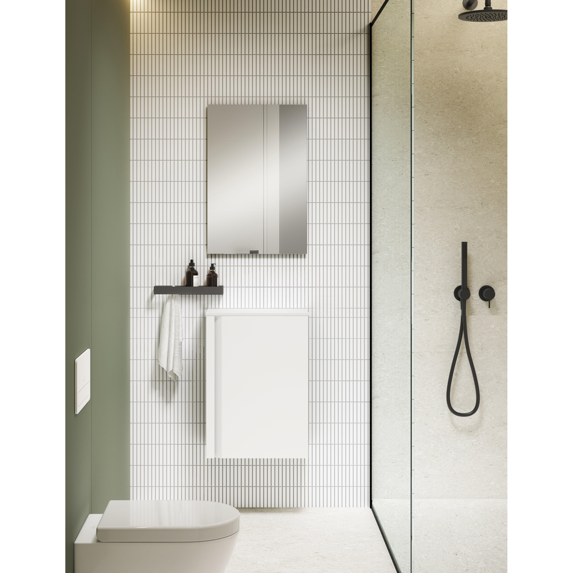- 1 porte – espace de rangement pratique pour les accessoires de salle de bains