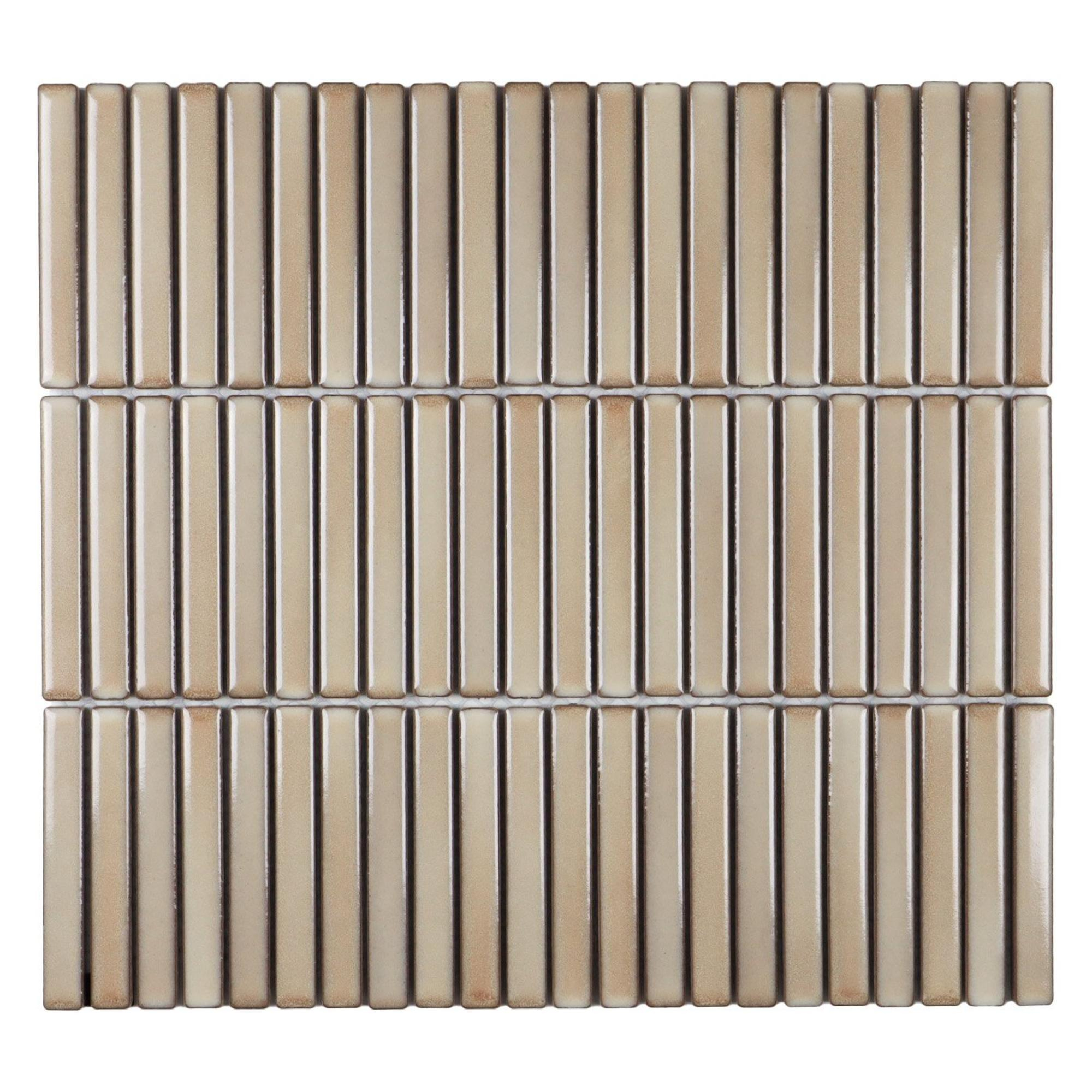 Avec ce carreau mosaïque élégant, vous apportez un véritable accroche-regard dans votre salle de bains, vos toilettes ou votre cuisine. Les petites pièces étroites et allongées dans une teinte beige chaleureuse créent une atmosphère d'hôtel de luxe, tandis que la finition brillante fait joliment jouer la lumière sur le mur. Grâce au format mosaïque, il s'agit d'un choix idéal pour les murs d'accent, une niche dans la douche, la façade d'un meuble de salle de bains ou un détail ludique derrière le lavabo. La natte de carreaux s'intègre aussi bien dans les intérieurs modernes que dans les salles de bains plus intemporelles et calmes où vous souhaitez ajouter une structure subtile mais élégante. Comme les éléments sont petits, la surface suit sans effort les courbes légères et il est également facile de carreler les petits murs ou les angles plus difficiles. Vous optez ainsi pour une solution chaleureuse et pratique qui donne immédiatement plus de caractère et de profondeur à votre espace.