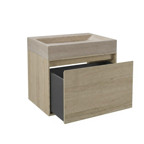 Forzalaqua Ibiza Ensemble meuble de salle de bains - 80x50x50cm - 1 tiroir - lavabo en travertin - sans trou de robinet - jeu de supports - bouchen de vidage - smoke