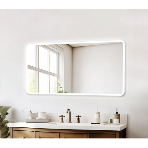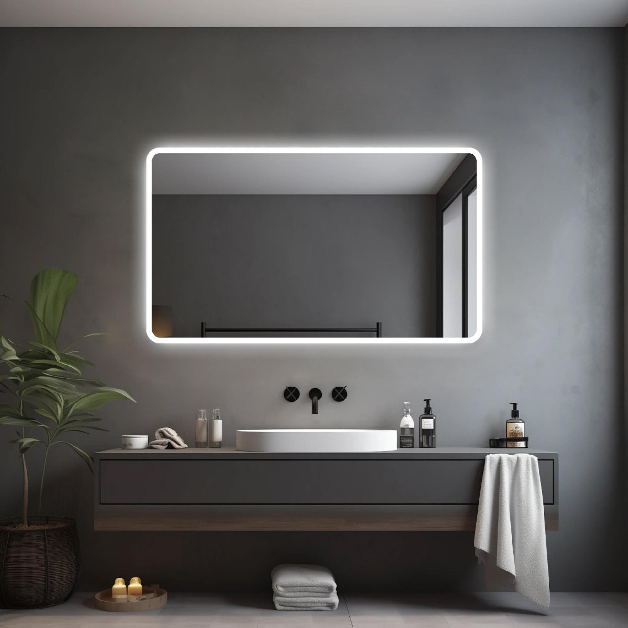 Fugaflow Excellent Arredo Miroir de Salle de Bain - 120x70 cm - avec coins arrondis - installation horizontale / verticale - éclairage LED indirect - chauffage du miroir - capteur infrarouge en partie inférieure