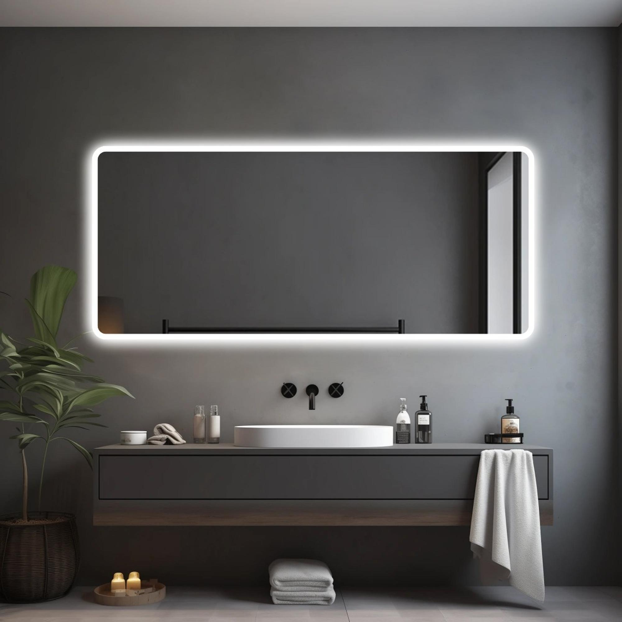 Fugaflow Excellent Arredo Miroir de Salle de Bain - 160x70 cm - avec coins arrondis - installation horizontale / verticale - éclairage LED indirect - chauffage du miroir - capteur infrarouge en partie inférieure