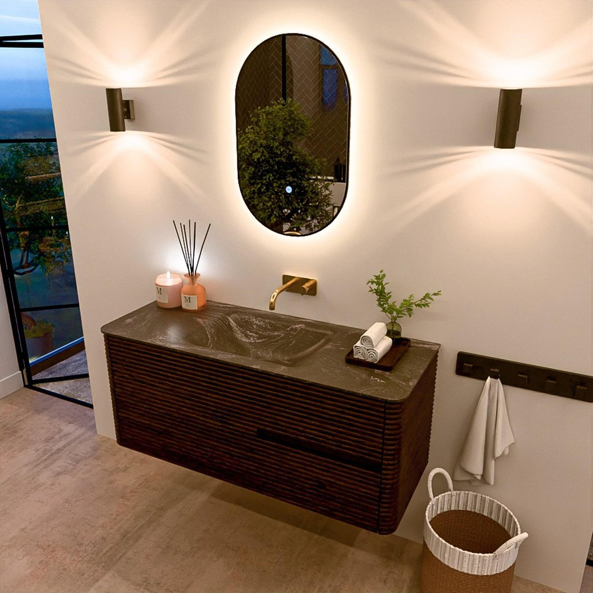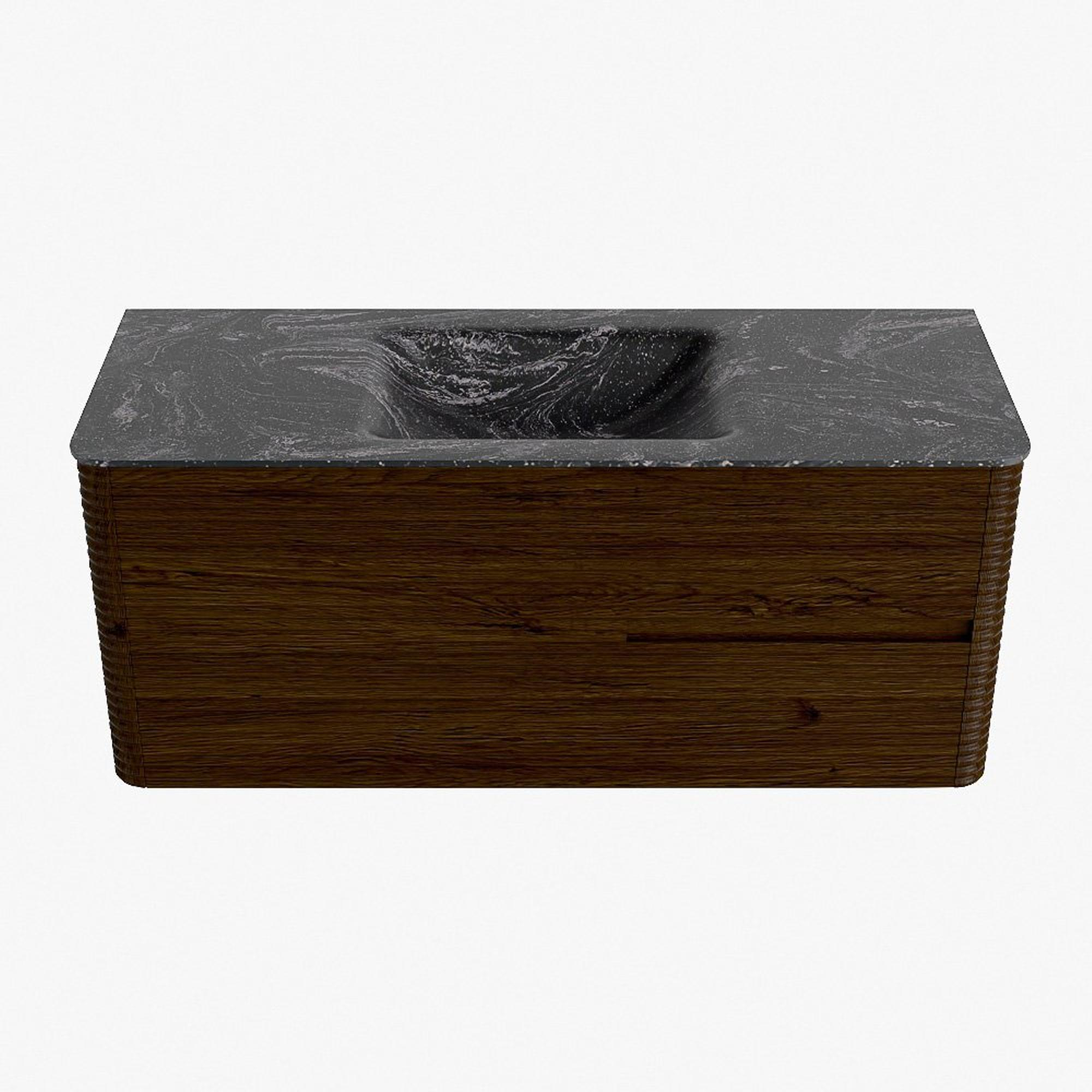 Mondiaz CIRO-DLUX Meuble de salle de bains - 120x45x50cm - Lavabo solid surface Lava - 1 vasque au milieu - sans trous de robinet - 2 tiroirs - Noyer