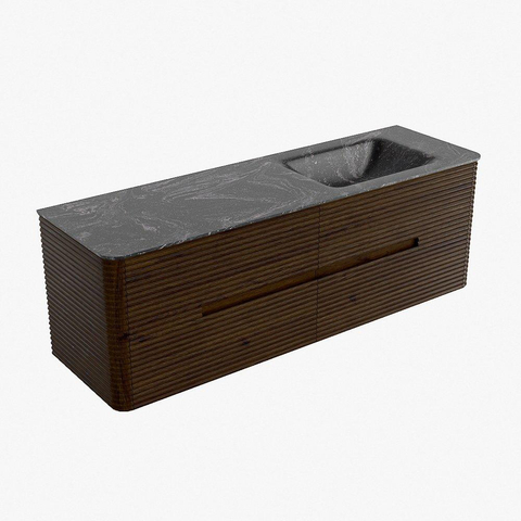 Mondiaz CIRO-DLUX Meuble de salle de bains - 150x45x50cm - Plan vasque solid surface Lava - 1 vasque à droite - sans trous de robinetterie - 4 tiroirs - Noyer