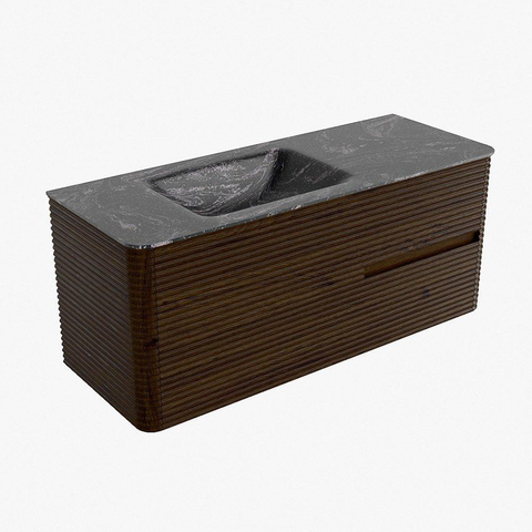 Mondiaz CIRO-DLUX Ensemble de meubles de salle de bains - 120x45x50cm - Lavabo solid surface Lava - 1 vasque à gauche - 1 trou de robinet - 2 tiroirs - Noyer
