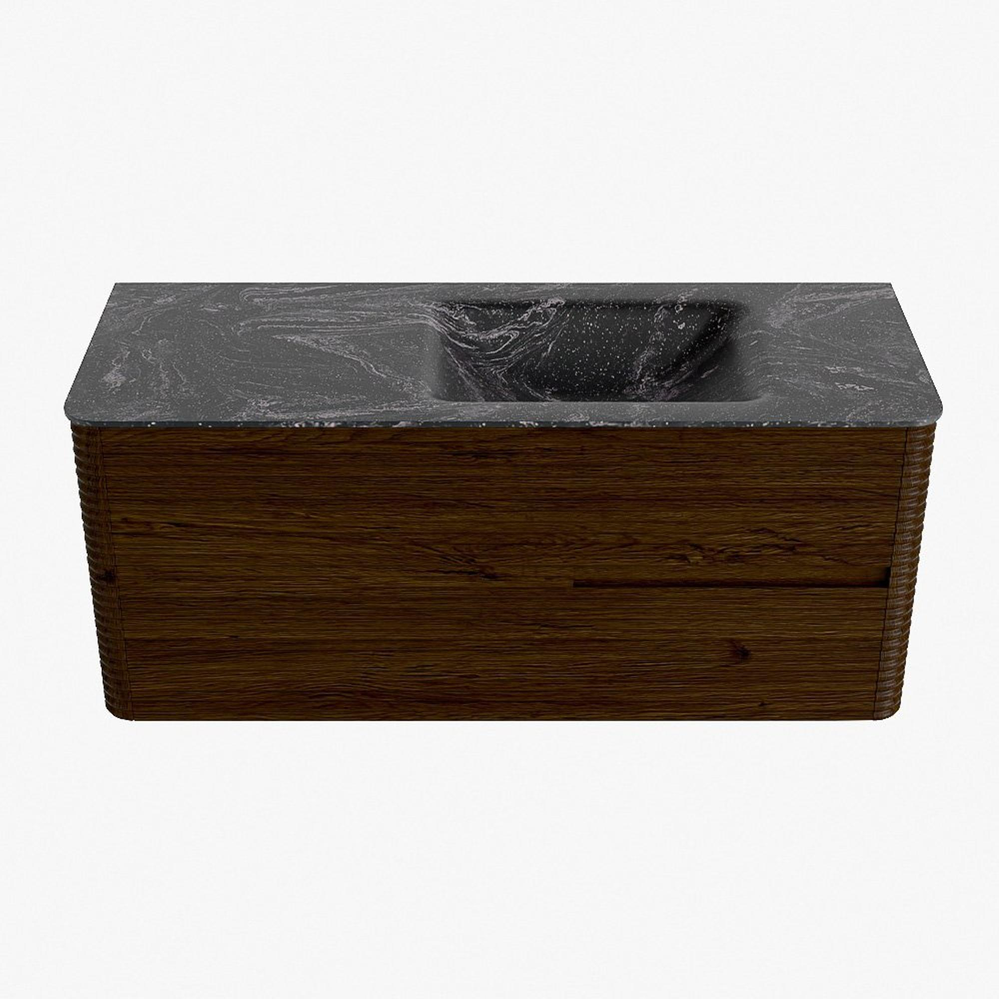 Mondiaz CIRO-DLUX Ensemble de meubles de salle de bains - 120x45x50cm - Lavabo solid surface Lava - 1 vasque à droite - 1 trou de robinet - 2 tiroirs - Noyer