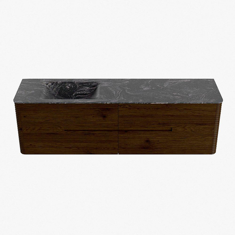 Mondiaz CIRO-DLUX Meuble de salle de bains - 170x45x50cm - Vasque solid surface Lava - 1 lavabo à gauche - 1 trou de robinet - 4 tiroirs - Noyer