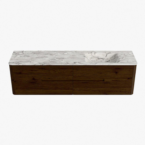 Mondiaz CIRO-DLUX Meuble de salle de bains - 180x45x50cm - plan vasque solid surface Glace - 1 vasque à droite - sans trous de robinetterie - 4 tiroirs - Noyer