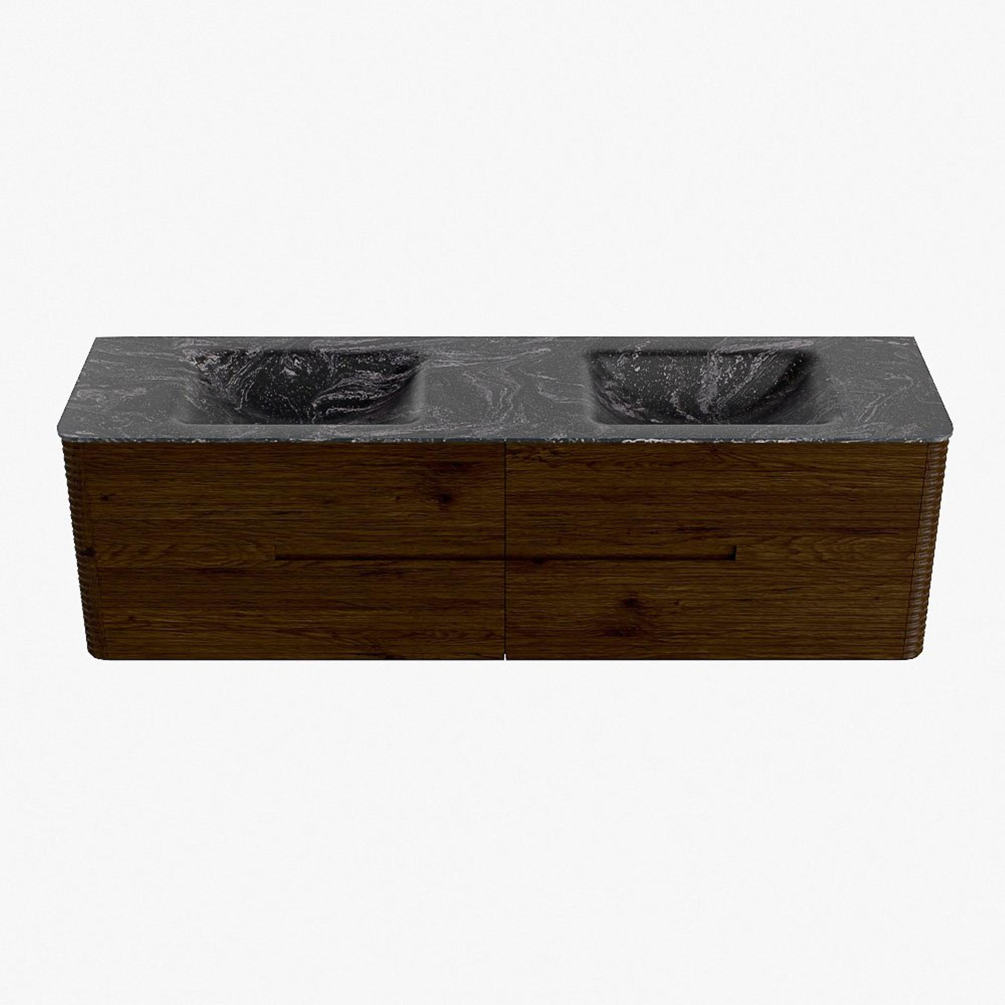 Mondiaz CIRO-DLUX Meuble de salle de bains ensemble - 170x45x50cm - Vasque solid surface Lava - 2 bacs Double - sans trous de robinet - 4 tiroirs - Noyer