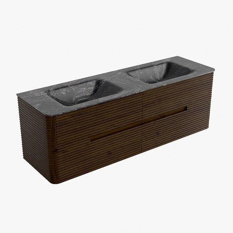 Mondiaz CIRO-DLUX Ensemble de meubles de salle de bains - 150x45x50cm - Lavabo solid surface Lava - 2 vasques double - 2 trous de robinet - 4 tiroirs - Noyer