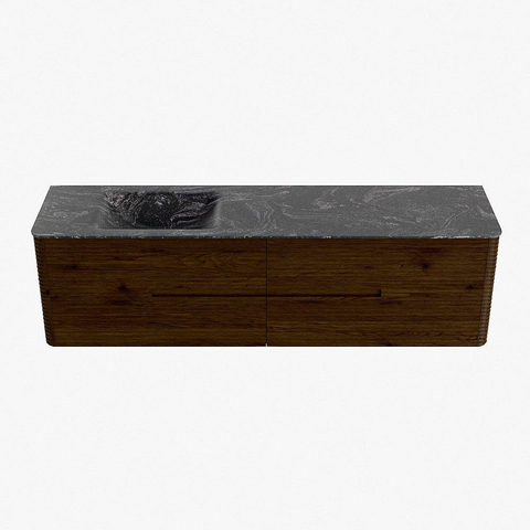 Mondiaz CIRO-DLUX Ensemble de meubles de salle de bains - 180x45x50cm - lavabo solid surface Lava - 1 vasque à gauche - sans trous de robinet - 4 tiroirs - Noyer
