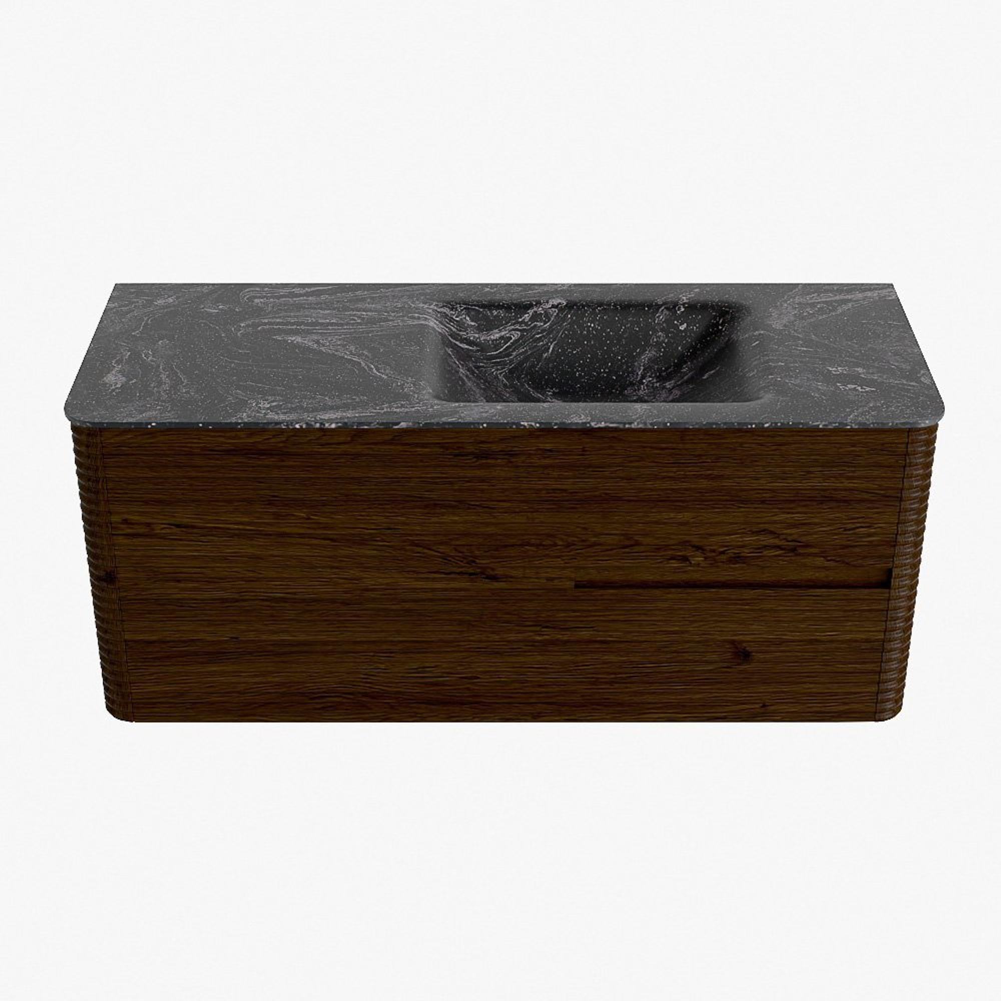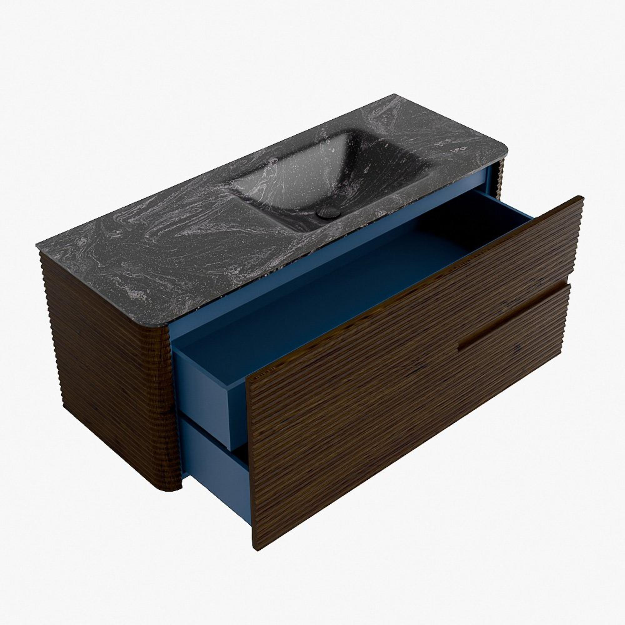 Mondiaz CIRO-DLUX Meuble de salle de bains - 120x45x50cm - Plan vasque solid surface Lava - 1 lavabo à droite - sans trous de robinetterie - 2 tiroirs - Noyer