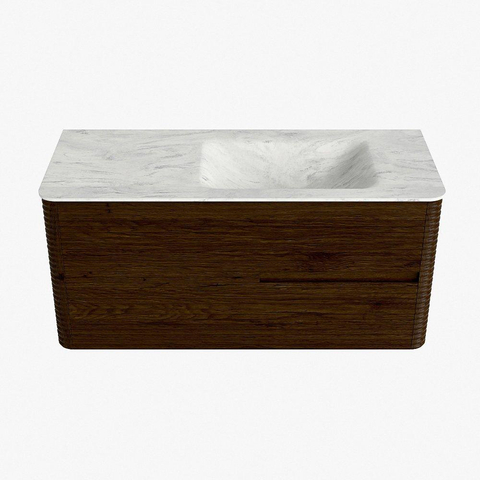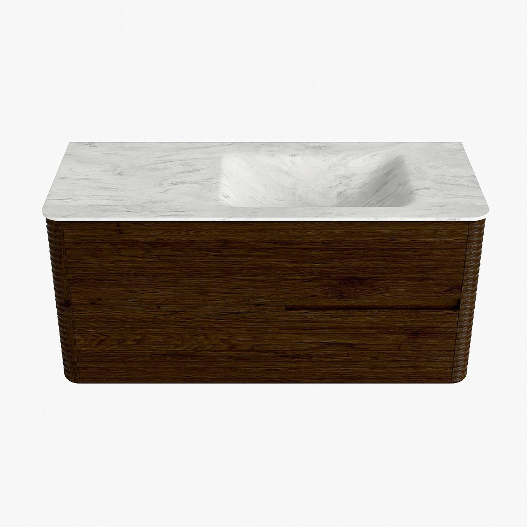 Mondiaz CIRO-DLUX Meuble de salle de bains - 110x45x50cm - Plan vasque solid surface Opalo - 1 vasque à droite - sans trous de robinet - 2 tiroirs - Noyer