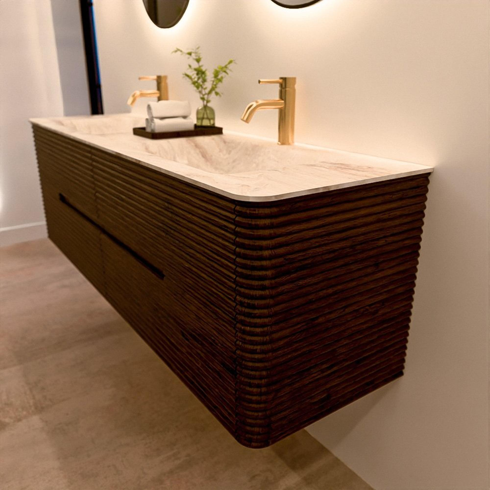 Mondiaz CIRO-DLUX Ensemble de meubles de salle de bains - 160x45x50cm - Plan vasque solid surface Frappe - 2 vasques Double - 2 trous de robinet - 4 tiroirs - Noyer