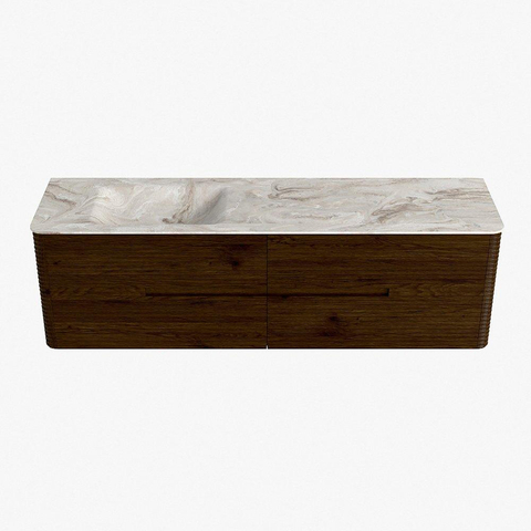 Mondiaz CIRO-DLUX Meuble de salle de bains - 170x45x50cm - Plan vasque solid surface Frappe - 1 lavabo à gauche - 1 trou de robinet - 4 tiroirs - Noyer
