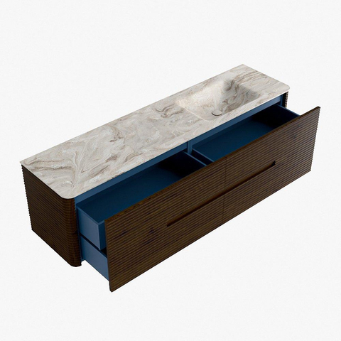 Mondiaz CIRO-DLUX Meuble de salle de bains - 180x45x50cm - Plan vasque solid surface Frappe - 1 vasque à droite - 1 trou de robinetterie - 4 tiroirs - Noyer
