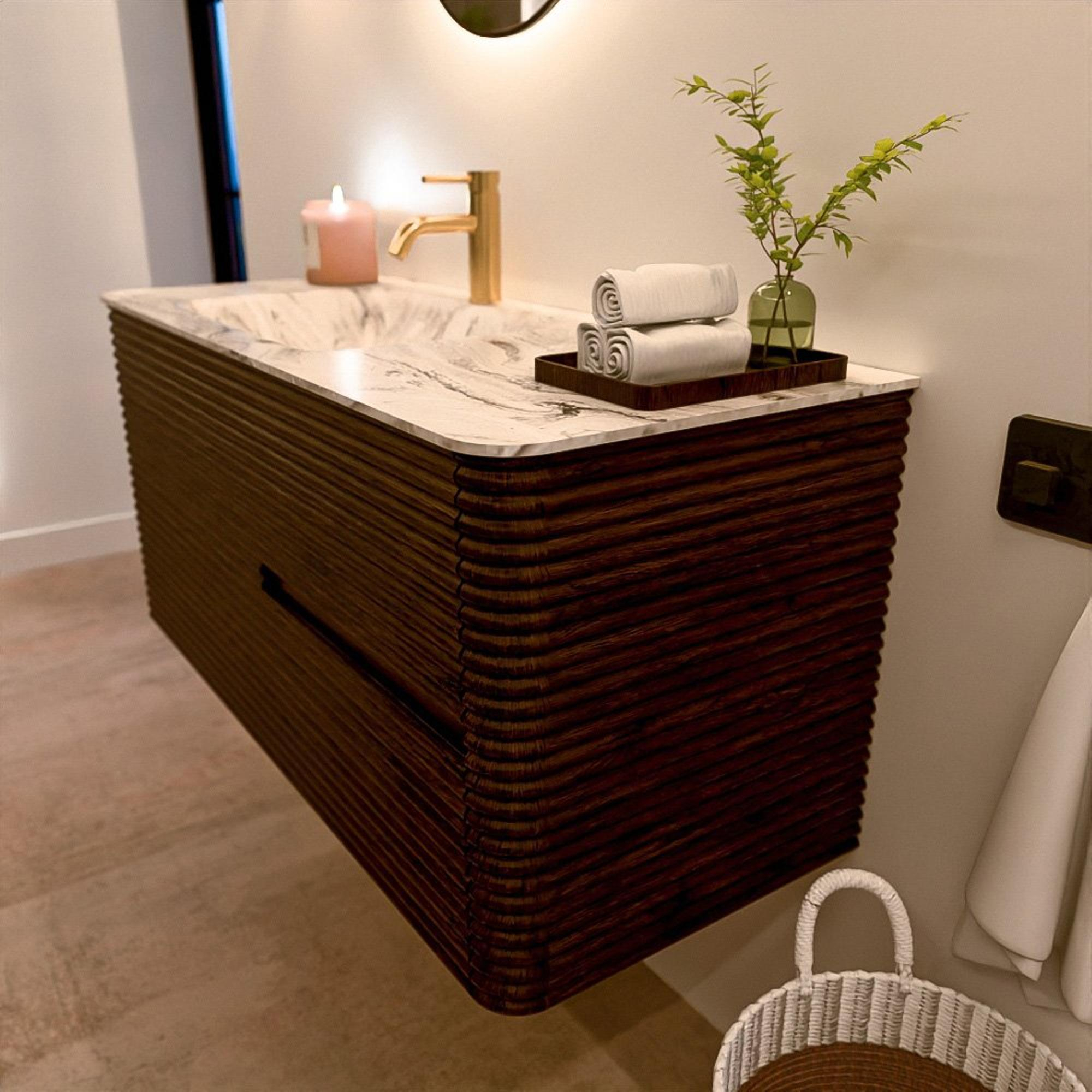 Le meuble de salle de bain CIRO-DLUX a été développé pour ceux qui choisissent un design moderne, des matériaux naturels et une fonctionnalité de haute qualité. Avec des dimensions allant de 70 cm à 190 cm, la gamme CIRO-DLUX s’intègre facilement aussi bien dans les salles de bain compactes que dans les grands espaces de design. Chaque meuble est une combinaison équilibrée d’esthétique, de savoir-faire et de qualité durable.