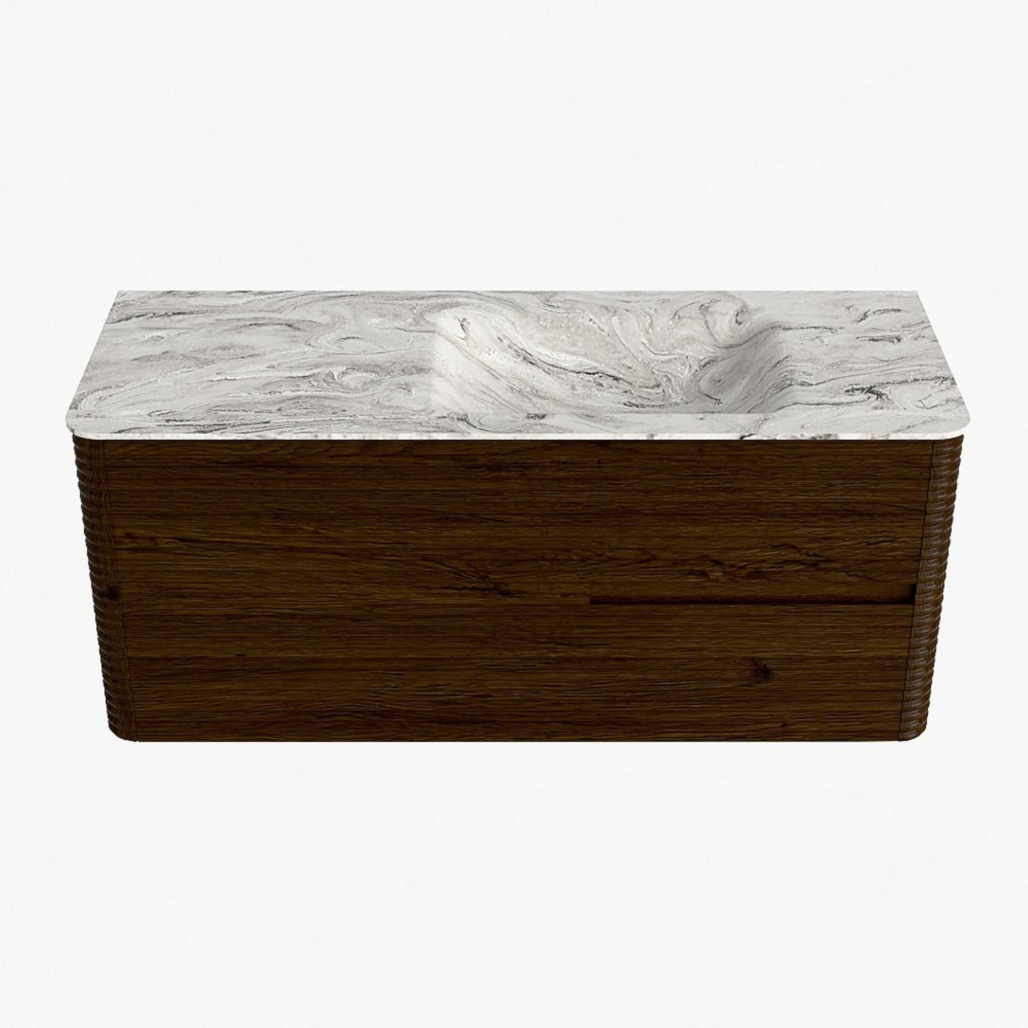 Mondiaz CIRO-DLUX Meuble de salle de bains - 120x45x50cm - Plan vasque solid surface Glace - 1 lavabo à droite - 1 trou de robinet - 2 tiroirs - Noyer