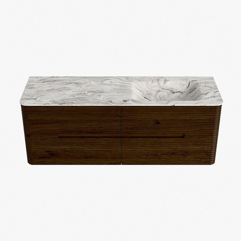 Mondiaz CIRO-DLUX Ensemble de meubles de salle de bains - 140x45x50cm - Plan-vasque solid surface Glace - 1 vasque à droite - 1 trou de robinet - 4 tiroirs - Noyer