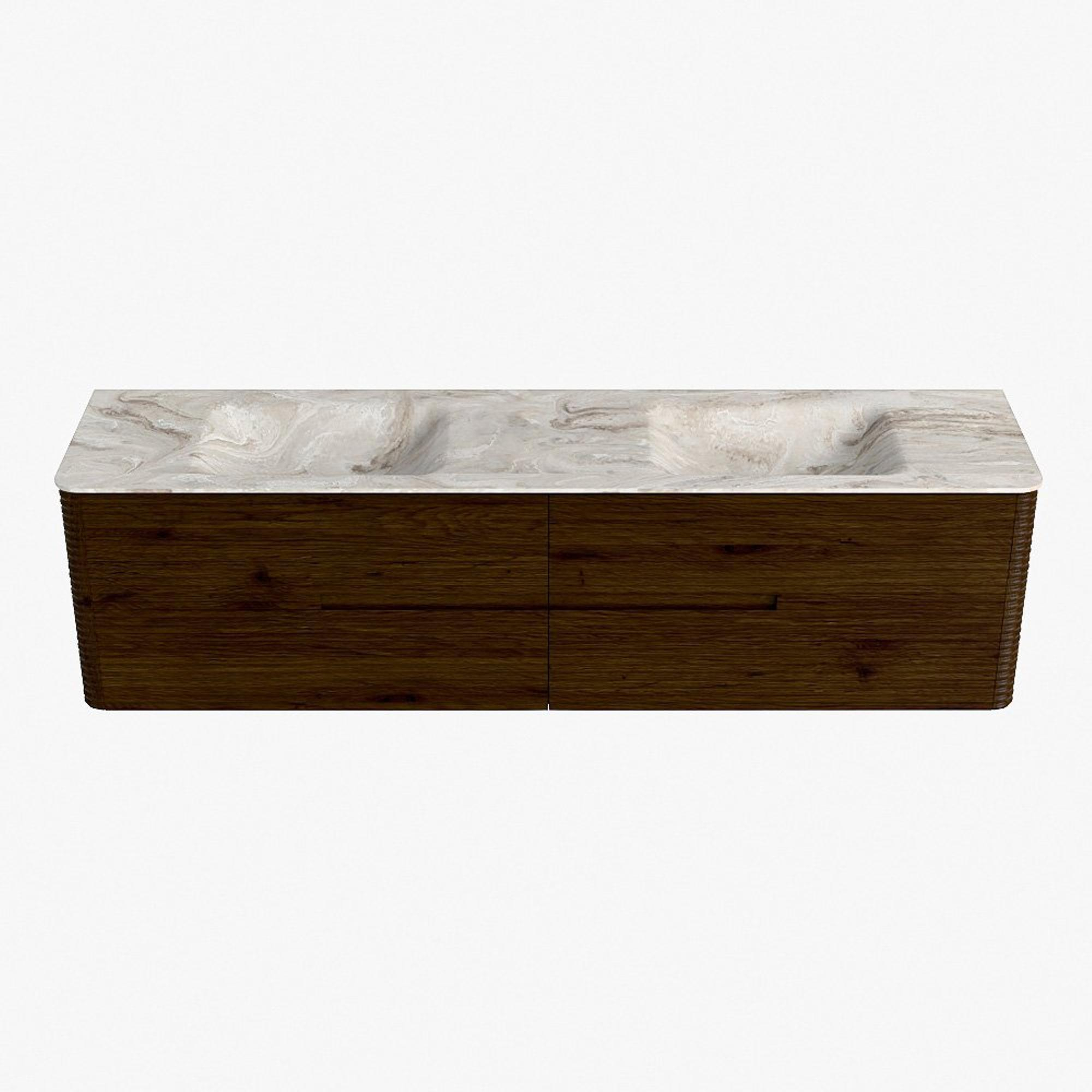 Mondiaz CIRO-DLUX Meuble de salle de bains - 190x45x50cm - Plan vasque solid surface Frappe - 2 vasques Double - sans trous de robinet - 4 tiroirs - Noyer