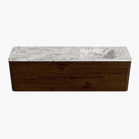 Mondiaz CIRO-DLUX Meuble de salle de bains - 170x45x50cm - Plan vasque solid surface Glace - 1 vasque à droite - 1 trou de robinetterie - 4 tiroirs - Noyer