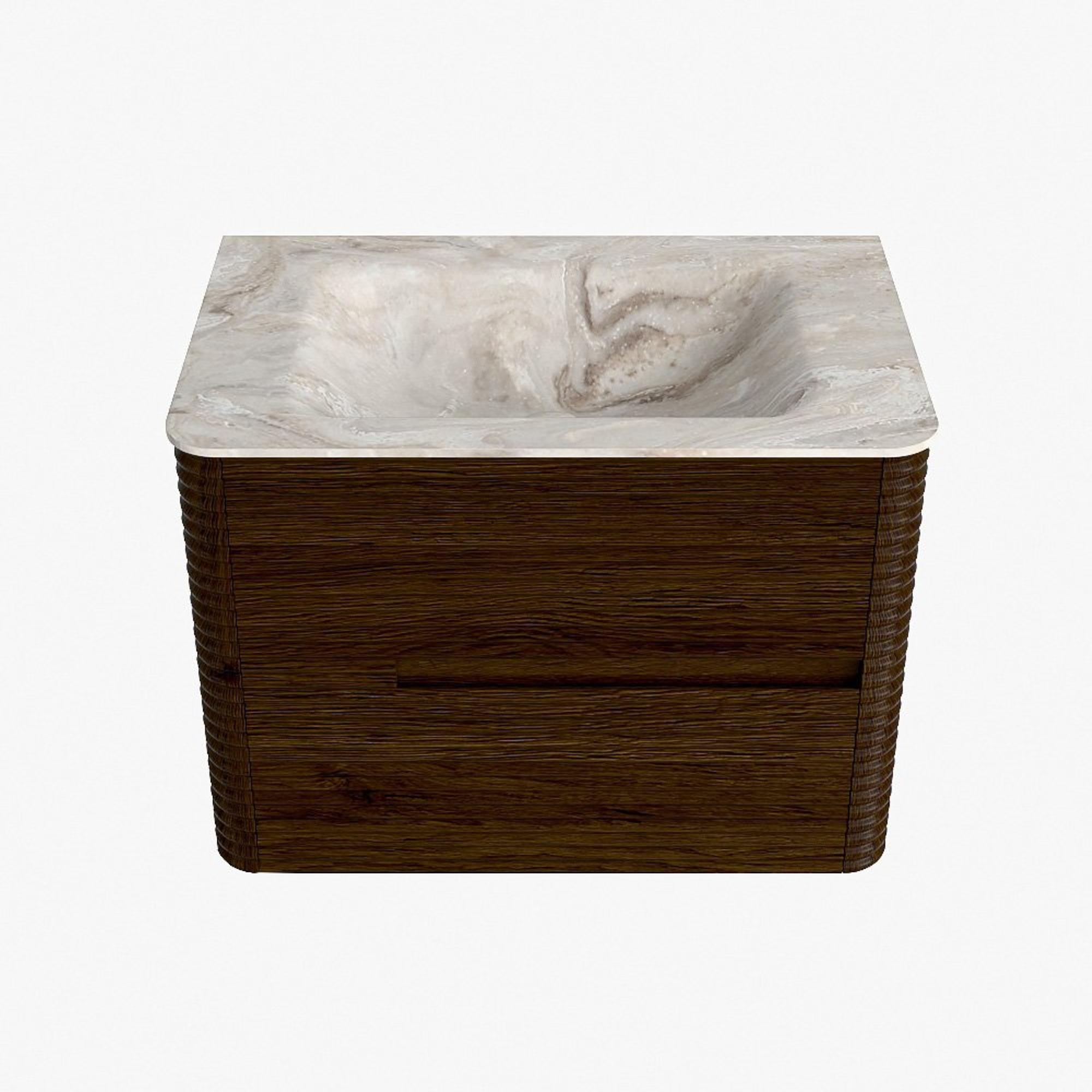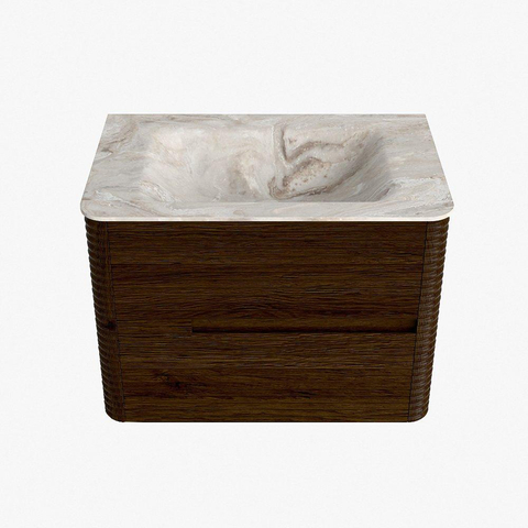 Mondiaz CIRO-DLUX Ensemble de meubles de salle de bains - 70x45x50cm - plan vasque Solid surface Frappe - 1 vasque au milieu - sans trous de robinet - 2 tiroirs - Noyer