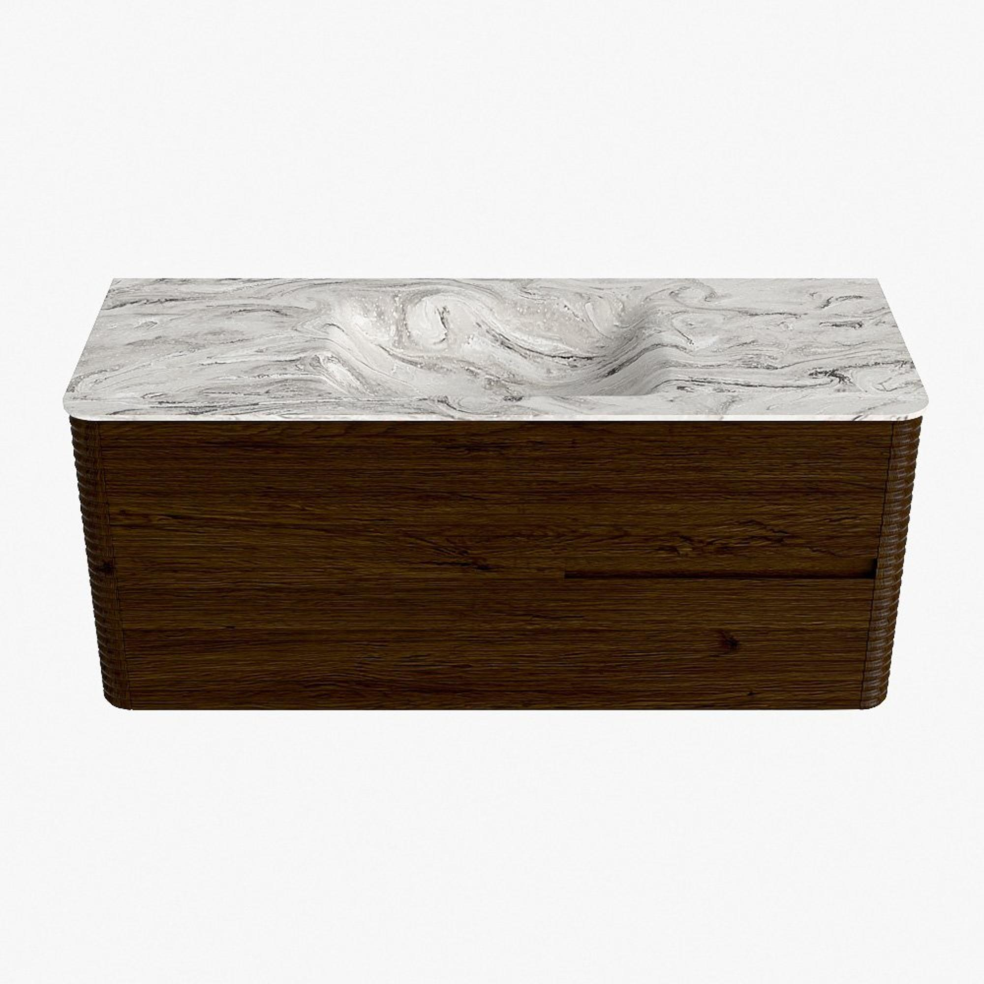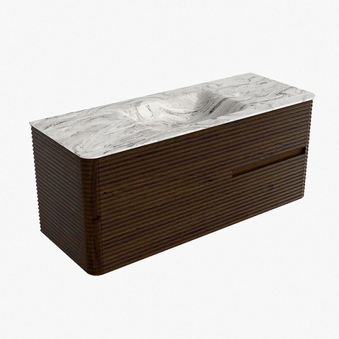 Mondiaz CIRO-DLUX Ensemble de meubles de salle de bains - 120x45x50cm - Vasque en solid surface Glace - 1 lavabo central - sans trous de robinet - 2 tiroirs - Noyer
