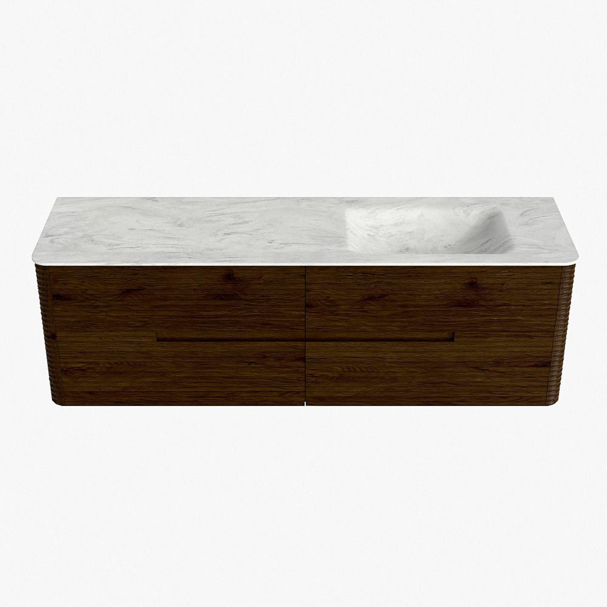 Mondiaz CIRO-DLUX Ensemble de meubles de salle de bains - 160x45x50cm - vasque en solid surface Opalo - 1 bassin à droite - 1 trou de robinet - 4 tiroirs - Noyer