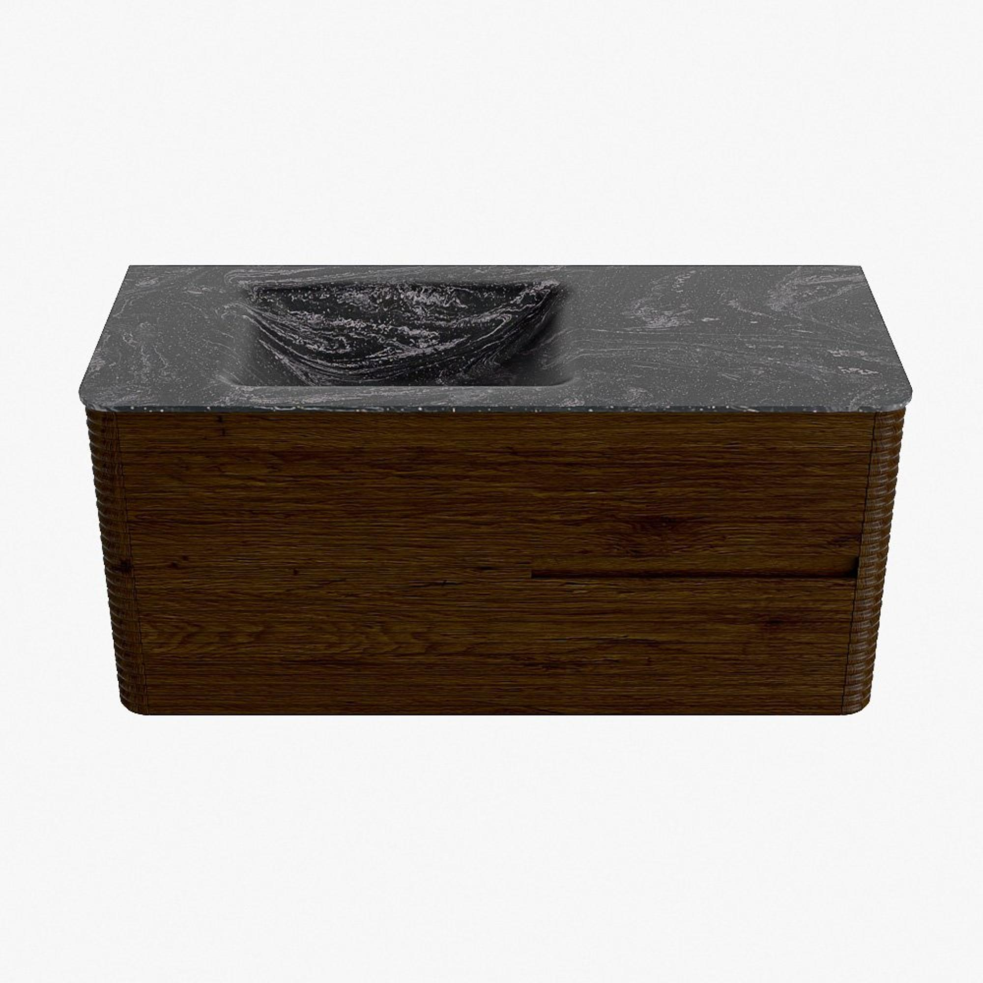 Mondiaz CIRO-DLUX Meuble de salle de bains - 110x45x50cm - Vasque en solid surface Lava - 1 lavabo à gauche - sans trous de robinetterie - 2 tiroirs - Noyer